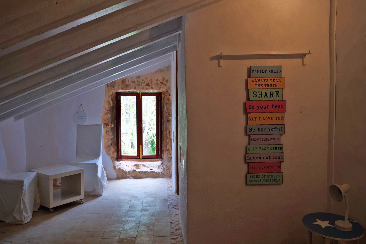 Das 250 Jahre altes Anwesen wurde mit viel Liebe zum Detail in ein Ferien-Domizil umgewandelt. Dabei wurde besonderer Wert daraufgelegt, den authentischen Stil der Finca beizubehalten, ohne dass es an jeglichen Komfort oder Qualität fehlt. Der Eingang mit seinen schönen Holztüren öffnet das Herz der Finca: den Salon, der zentrale Ort der Begegnung. Gleich zur linken Seite befindet sich die Küche. Diese ist im mallorquinischen Stil gehalten und mit allen wichtigen Küchengeräten ausgestattet. Das Anwesen selbst bietet Ihnen mit seinen sieben Schlafzimmern mit Bad en Suite und einer Wohnfläche von 450 m² ausreichend viel Platz für bis zu 18 Personen, um auch mit mehreren Familien und/oder Freunden einen erholsamen Urlaub gemeinsam verbringen zu können. Bei Bedarf sind zusätzlich bis zu drei Kinderbetten erhältlich. Der großzügige Garten mit Feigen-, Zitronen- und Orangenbäumen sowie einem Swimmingpool mit separatem Kinderbereich und Sonnenliegen lädt zum gemütlichen Verweilen und Sonnenbaden ein. Ein eigener Tennisplatz sowie eine Tischtennisplatte stehen für den sportlichen Ausgleich zur Verfügung.